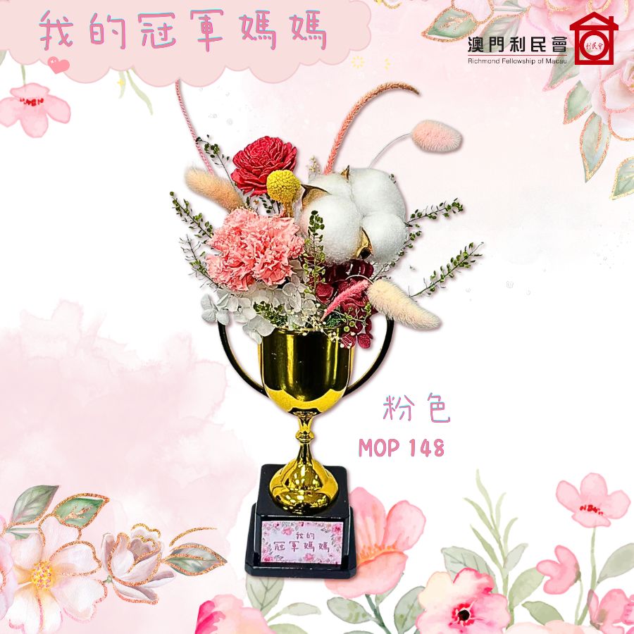 母親節-康乃馨保鮮花玻璃罩(粉)